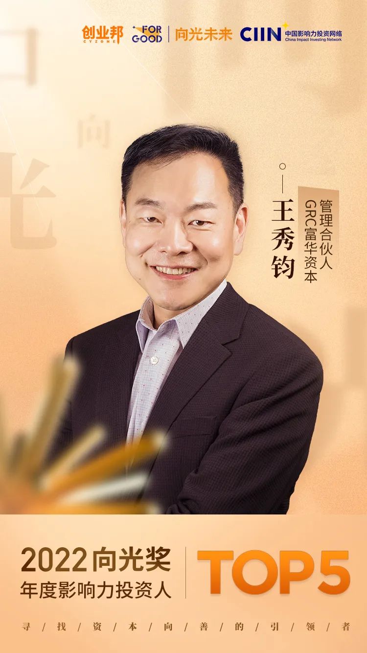 近日,创业邦再度联合向光未来与中国影响力投资网络(CIIN)共同推出“2022向光奖 | 年度影响力投资人TOP5”评选活动,旨在寻找更多资本向善的引领者,树立行业榜样。GRC富华资本管理合伙人王秀钧博士凭借在影响力投资领域的优秀表现,获评“2022向光奖 | 年度影响力投资人TOP5”,他表示期待通过本次获奖,树立资本向善的标杆,加速社会责任投资,引领中国资本向善趋势。